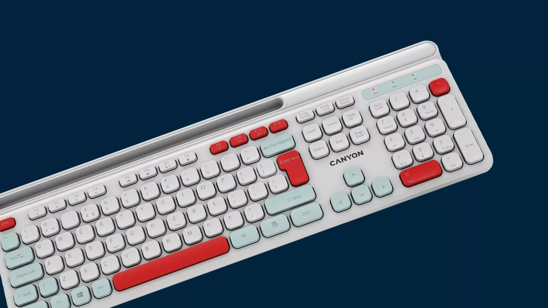 Această tastatură elegantă și subțire are un layout de dimensiuni complete cu 105 taste, completată de un buton numeric util pentru toate nevoile tale de calcul. Cu 11 taste multimedia la îndemână, vei avea control asupra divertismentului tău. În plus, picioarele înclinate acoperite cu cauciuc adaugă stabilitate.