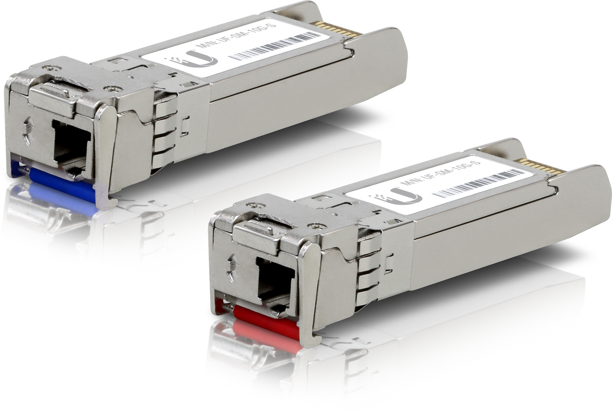 Ubiquiti UF-SM-10G-S. Tip aparat emisie-recepție SFP: Fibră optică, Rată maximă transfer de date: 10000 Mbit/s, Tipul de interfaţă: SFP+. Culoarea produsului: Aluminiu, Albastru, Roşu. Cantitate per ambalaj: 2 buc.