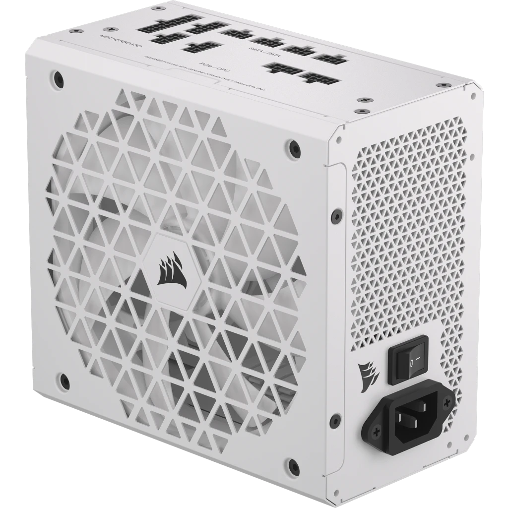 Corsair RMx Series RM750x. Putere totală: 750 W, Tensiune AC intrare: 100 - 240 V, Frecvență de intrare AC: 47 - 63 Hz. Conector putere placă de bază: 24-pin ATX, Lungime cablu de alimentare placă de bază: 61 cm, Lungime cablu alimentare SATA: 800 mm. Scop: PC-ul, Factor de formă sursă alimentare energie (PSU): ATX, Certificare 80 PLUs: 80 PLUS Gold. Culoarea produsului: Alb, Tipul de răcire: Activ, Diametru ventilator: 14 cm. Greutate: 3,2 kg
